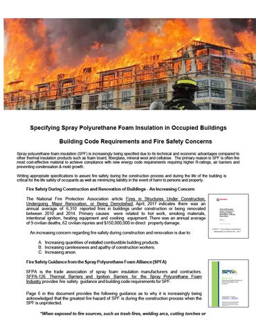 Accordingly, the greatest fire hazard of SPF is during the construction process when it is exposed prior to the installation of the fire protective covering (e.g. ½” gypsum board).
